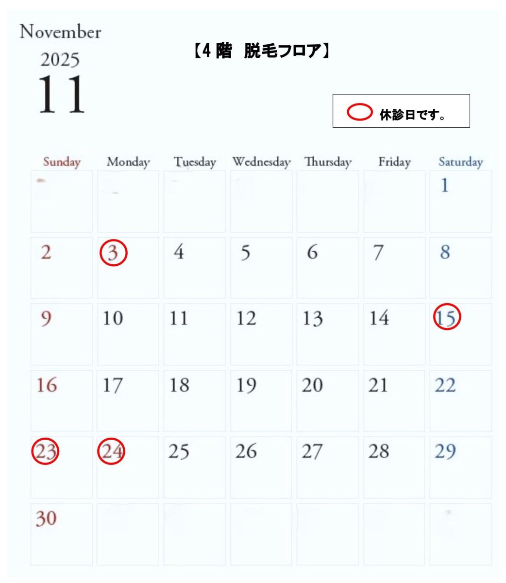 ★休診日 【11月】2、3、9、15、16、23,24、30