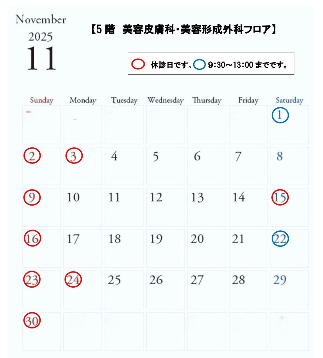 ≪2025年11月の診療スケジュール≫をお知らせいたします。