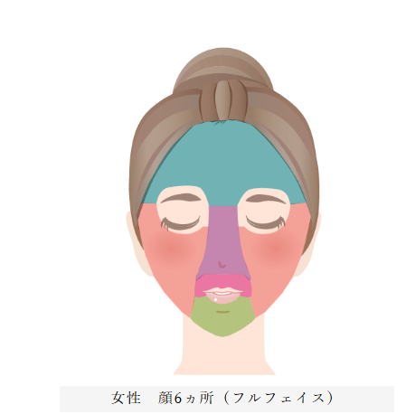 顔の各部位1カ所~6カ所まで選べて、6回回数セットがベーシックプランとなっていました。
