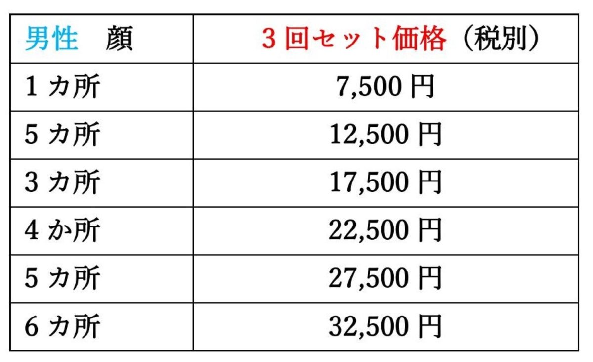 男性の「顔(ヒゲ)脱毛」も女性の「顔(うぶ毛)脱毛」も、これまでの6回セットに代わり、新しく「3回セット」となります。